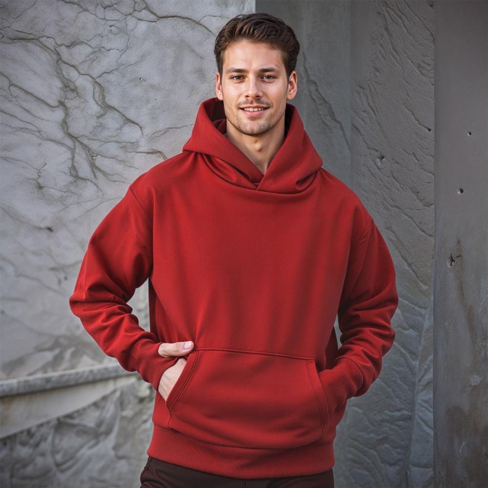 مميزات هودي اوفر سايز رجالي قطن برتقالي غامق