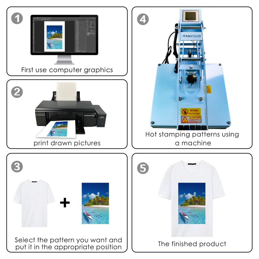 لا تحصر استخدامك في التيشيرتات فقط! بفضل المساحة الكبيرة والضغط العالي، يمكنك استخدام هذا المكبس لإنتاج:
