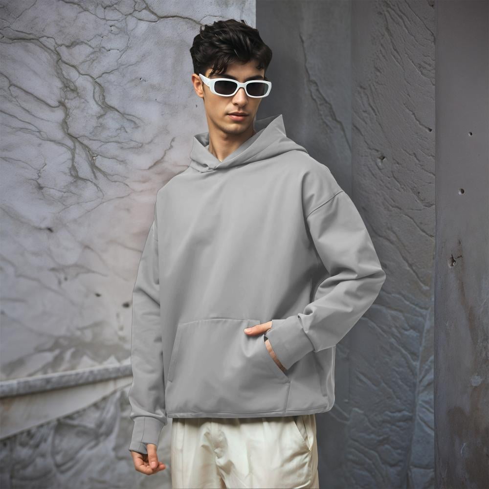 لأنك تستحق الأفضل، جرب بلوفر اوفر سايز رجالي باللون الرمادي تصميم يناسب كافة الأذواق ويمنحك شعورًا بالراحة طوال اليوم.