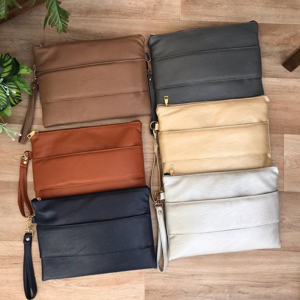 شنطة يد باوتش جلد ناعم اسود 30 * 22 سم