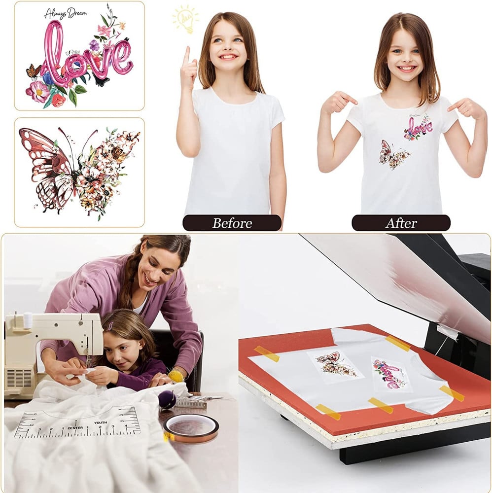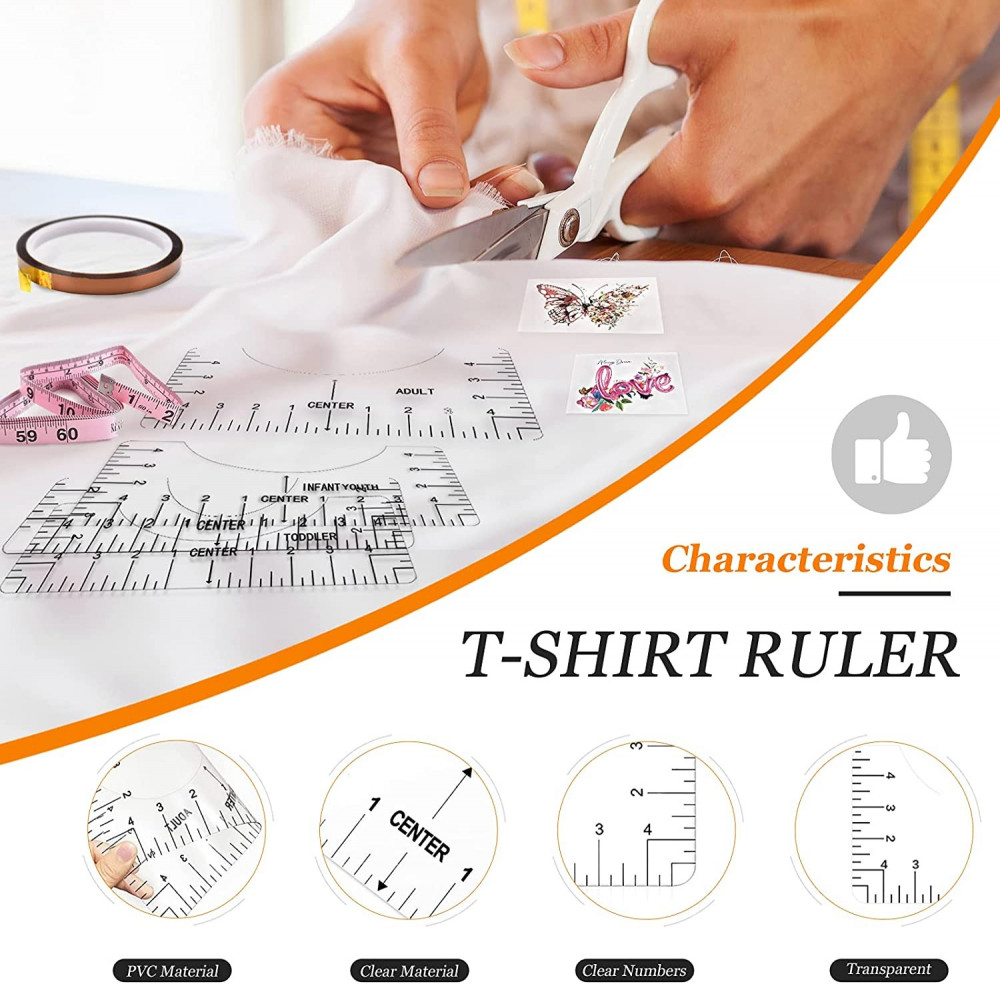 - مسطرة وضع التيشيرت: مصنوعة من بولي فينيل الكلورايد. يمكن لمسطرة محاذاة التيشيرت الحصول على محاذاة ثابتة في كل مرة وتأخذ التخمين لمحاذاة التحويلات. تكملة مثالية لأعمال التيشيرت الخاصة بك.