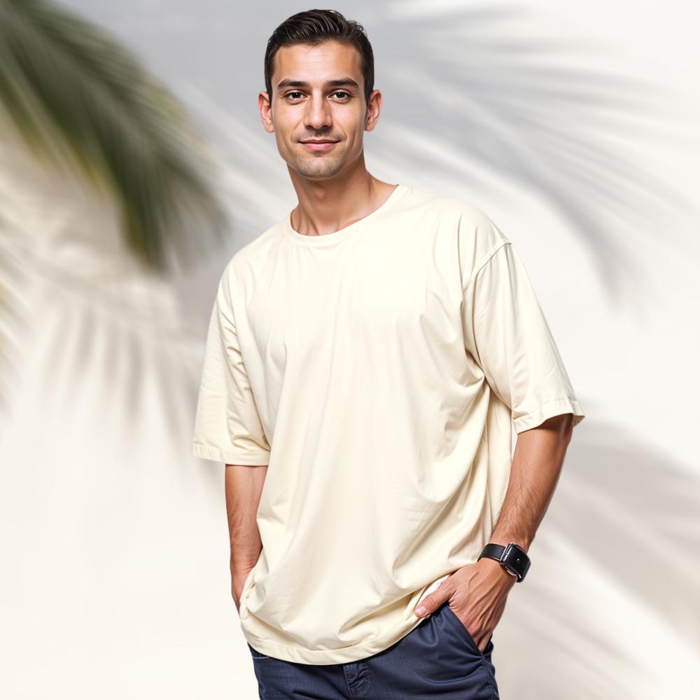 - بفضل تصميمه الأوفر سايز، يوفر التيشيرت مرونة في الارتداء، ليناسب جميع الأجسام ويوفر مظهرًا أنيقًا ومريحًا في آن واحد.